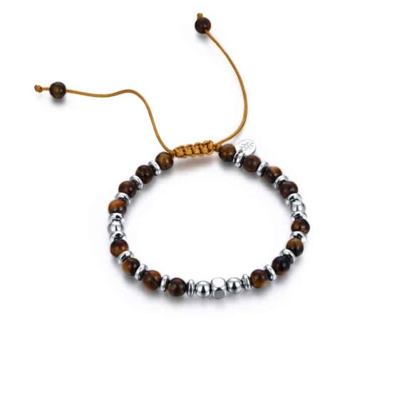 Bracciale corda con pietre marroni e cordino abbinato Materiale: corda, pietre Lunghezza: 13 cm regolabile
