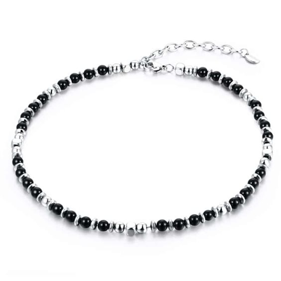Collana bimbo con pietre nere Materiale: acciaio, pietre Lunghezza: 30 cm + 5 cm