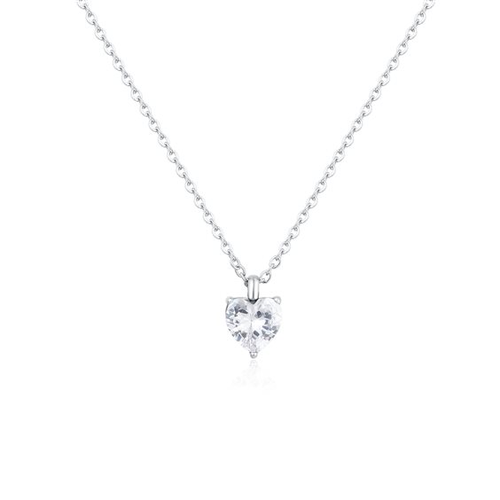 Collana con cristallo cuore bianco - Collana a catenina con pendente cristallo a forma di cuore Lunghezza: 40 cm + 5 cm di estensione Materiale: acciaio ipoallergenico e inossidabile