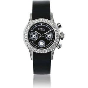 Cronografo Cassa in acciaio con Swarovski. indici Vetro minerale antigraffio Cinturino in pelle effetto vernice nera
