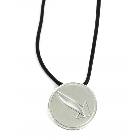 Collana in acciaio ideata e realizzata da Tribe by Breil, il pendente ha un diametro di 2 centimetri, il cordoncino è realizzato in cotone cerato nero.