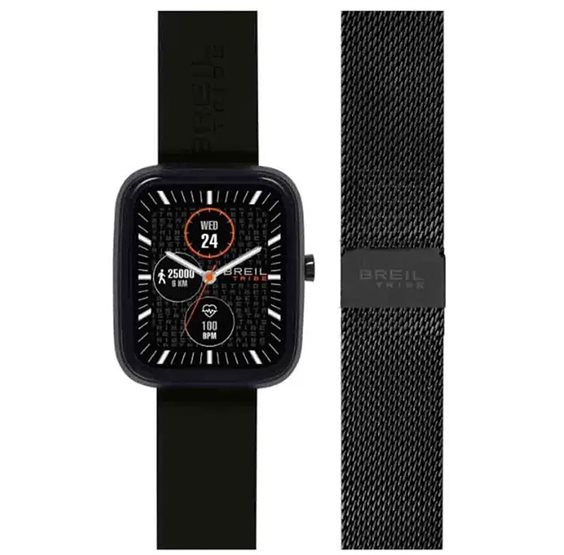 Lo smartwatch SBT-3 è versatile e adatto ad ogni momento della giornata. Viene infatti venduto con due diversi cinturini, uno in morbido silicone e uno in acciaio con maglia mesh, facilmente intercambiabili. Oltre ai diversi quadranti originali Breil Tribe già caricati è possibile aggiungerne e personalizzarne altri scaricandoli dall'App. L'Orologio Unisex Smartwatch SBT-3 Silver Doppio Cinturino Nero e Maglia Milanese Nero Breil Tribe ha un prezzo di € 129 Codice: EW0751 Chip principale Reltek 8763EWE Risoluzione 240 x 286 pixel full touch screen. Display IPS 1,83'' W.R. IP68 Connettività Bluetooth BT 5.2 Capacità Batteria 230 mAh/3.7V Durata 7 gioni a seconda dell'utilizzo Metodo di Carica a 2 pin magnetiche Cassa zinc alloy silver e back in ABS Secondo cinturino intercambiabile Chiusura Magnetica Compatibile con il sistema operativo IOS 13.0 e Android 7.1 o versioni successive e BT 5.2 1 Cinturino in Maglia Milanese Nero 1 Cinturino in Silicone Nero Garanzia2 anni