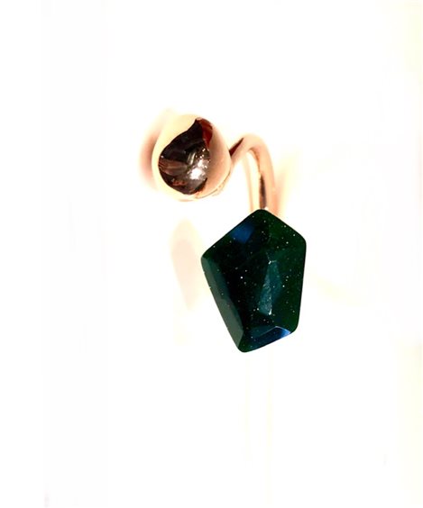Anello Breil stones in acciaio bronzato con possibilità di inserire pietra a piacere, in questo caso monta una pietra sfaccettata forma Breil in quarzo idrotermale nera con riflessi verdi e glitter.