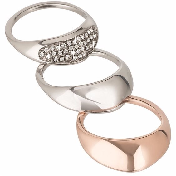 TRITTICO DI ANELLI, DI CUI UNO CON CRISTALLI BIANCHI, UNO TUTTO ACCIAIO E UNO IN ACCIAIO COLORE ORO ROSA
