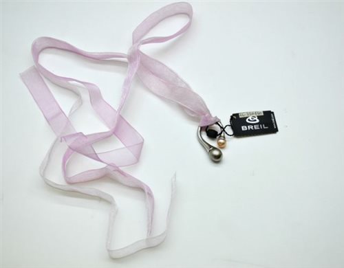 ollezione Steel Deco, Collana nastrino con pendente in acciaio lucido con: perla in acciaio satinato, Perla rosa di colore naturale. Misura regolabile.