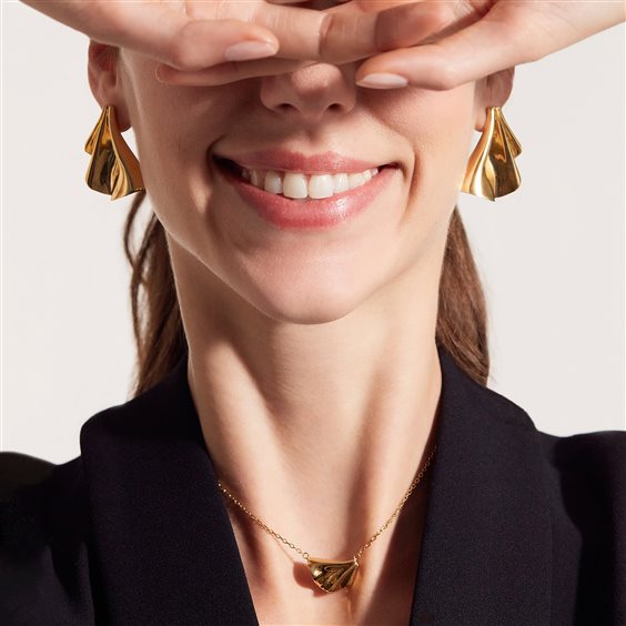 Il girocollo da donna Plissè non ha bisogno di descrizioni. Basta guardarla per rimanere affascianti dalle forme morbide ed eleganti. La sottile catenina regolabile in lunghezza è arricchita da un elemento in acciaio lucido color oro che sembra animarsi e creare mille piccole pieghe. Più piccolo e discreto rispetto alla collana lunga della stessa collezione, rende in ogni caso unico ogni look.