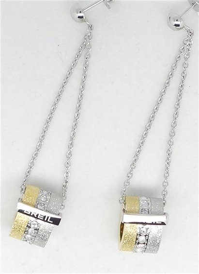 Orecchini in acciaio lucido con cristalli bianchi e finiture diamantate grigia e champagne
