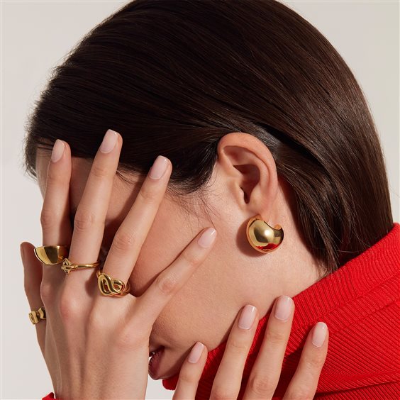 Gli orecchini Hoop sono in acciaio lucido color oro e hanno una forma ovale bombata. Fondamentali per arricchire il proprio look con un accessorio di tendenza.