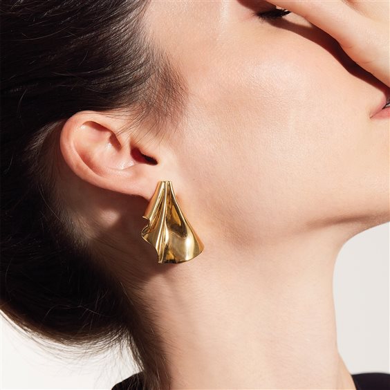 Voglia di oversize ed eleganza? Gli orecchini Plissè rispondono esattamente a queste richieste: volutamente importanti, sono realizzati in acciaio color oro, che grazie a mani esperte, viene ripiegato a formare mille sottili pieghe. Un gioiello che segue il viso e ne illumina i linamenti.