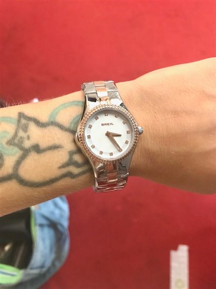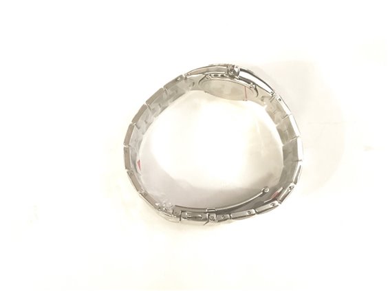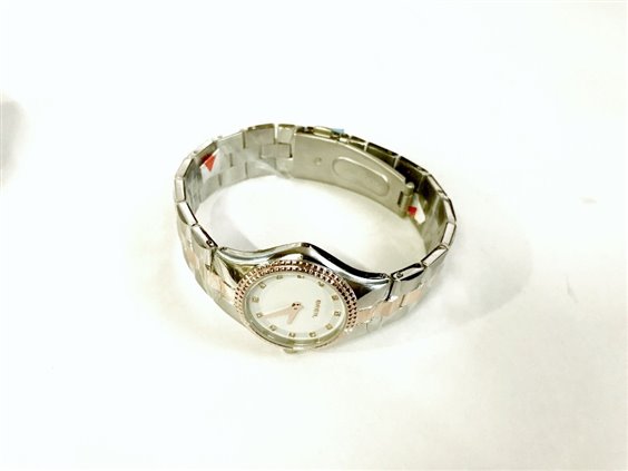 Orologio solo tempo da donna con cassa in acciaio della collezione Curvy. Quadrante bianco con cristalli, sfere IP oro rosa. Cinturino in acciaio con IP oro rosa, movimento al quarzo.