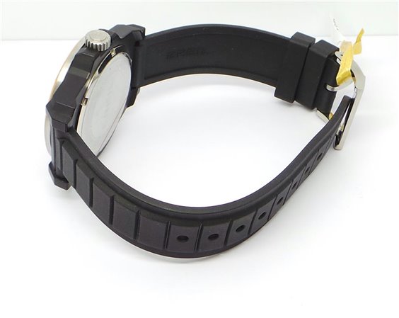 Multifunzione con movimento al quarzo analogico.Cassa in resina di colore nero .Dimensioni cassa: Diametro 42 mm, spessore 10 mm. Quadrante nero e verde con indici lancette e contatori di colore silver ghiera fissa ,Vetro minerale , corona a scatto .Cinturino in gomma di colore nero .