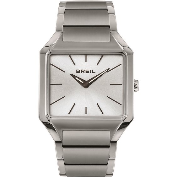 Orologio solo tempo con cassa in acciaio 40x37,5 mm. Il vetro è minerale e il quadrante argentato con un effetto raggi di sole. Bracciale in acciaio con sezione centrale satinata e chiusura con bottoni di sicurezza. Movimento al quarzo Miyota 2025. La resistenza all'acqua è di 5 Atm.