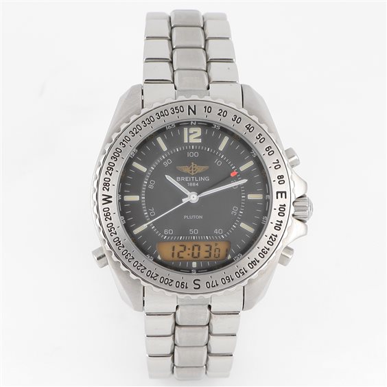 Collezione: Pluton Movimento: Al quarzo Display: Analogico e Digitale Funzioni: Cronografo Impermeabilità: 20 ATM water resistant Materiale cassa: Acciaio Colore cassa: Acciaio Colore quadrante: Nero Materiale cinturino: Acciaio Colore cinturino: Acciaio Diametro cassa (mm): 42 Spessore cassa: 10 Scatola originale Garanzia Paolo Zorzan di 2 anni