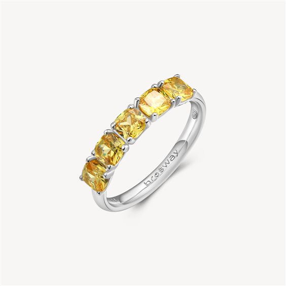 Anello in argento rodiato 925‰ con cushion cubic zirconia colore golden yellow.