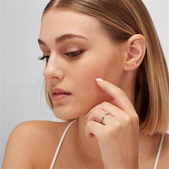 Anello in argento rodiato 925‰ con baguette cubic zirconia.