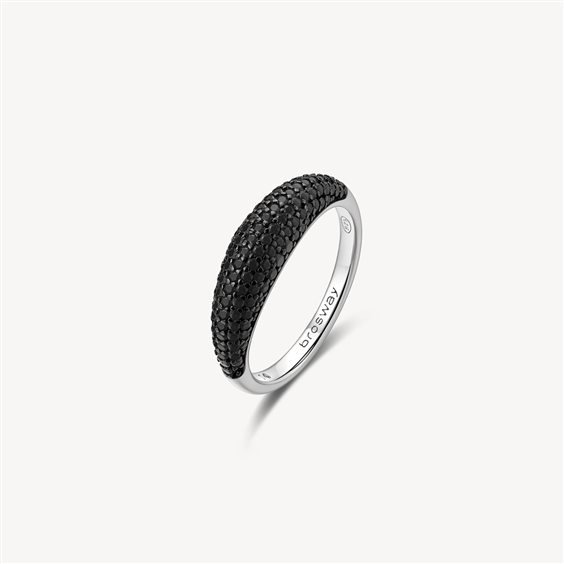 Anello in argento rodiato 925‰ con galvanica colore rutenio e cubic zirconia neri.