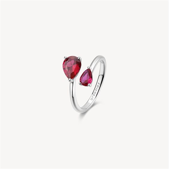 Anello in argento rodiato 925‰ con pear cubic zirconia colore ruby.
