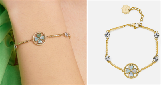 Bracciale regolabile in lunghezza con cristalli e quadrifoglio in madreperla