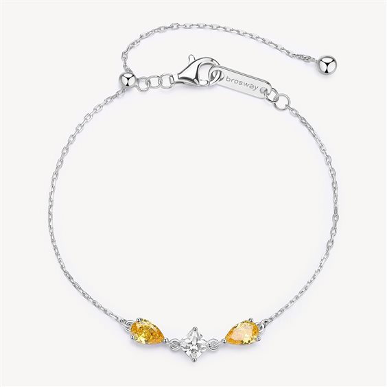 Bracciale tiralaccio in argento rodiato 925‰ con square cubic zirconia e pear cubic zirconia colore golden yellow.