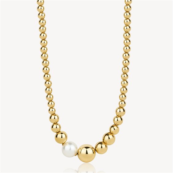 Collana girocollo in acciaio 316L, finitura pvd oro 14K e perla di conchiglia.