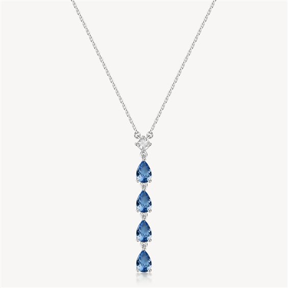 Collana girocollo in argento rodiato 925‰ e pendente con square cubic zirconia e pear cubic zirconia colore sapphire.