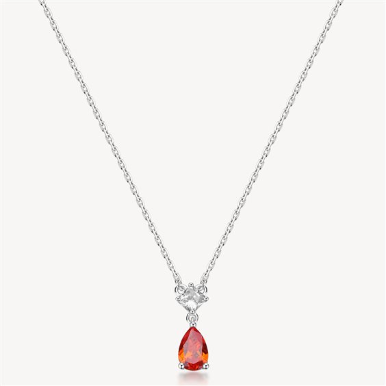 Collana girocollo in argento rodiato 925‰ e pendente con square cubic zirconia e pear cubic zirconia colore orange.