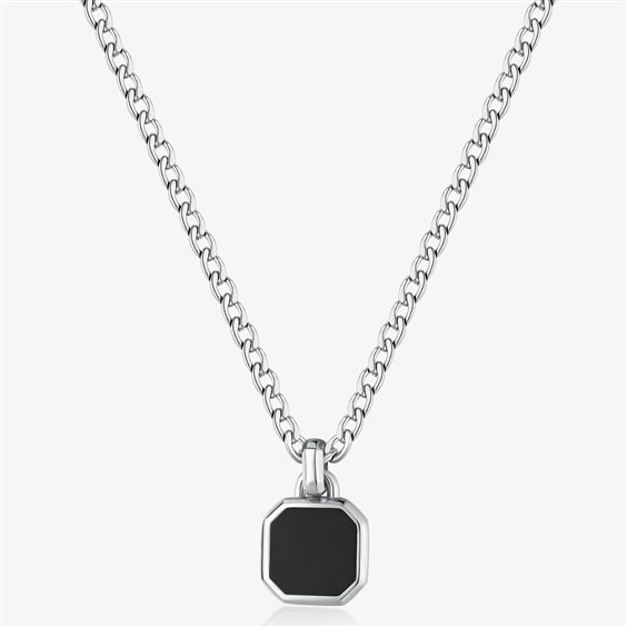 Collana catena grumetta girocollo in acciaio 316L e pendente con onice nero.