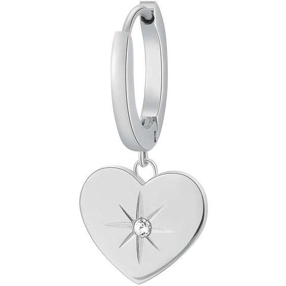 Orecchino singolo in acciaio 316L con pendente a forma di cuore e cristallo Swarovski ©