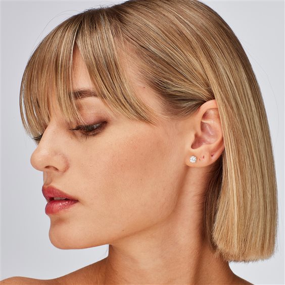 Orecchini a lobo in argento rodiato 925‰ con round cubic zirconia.