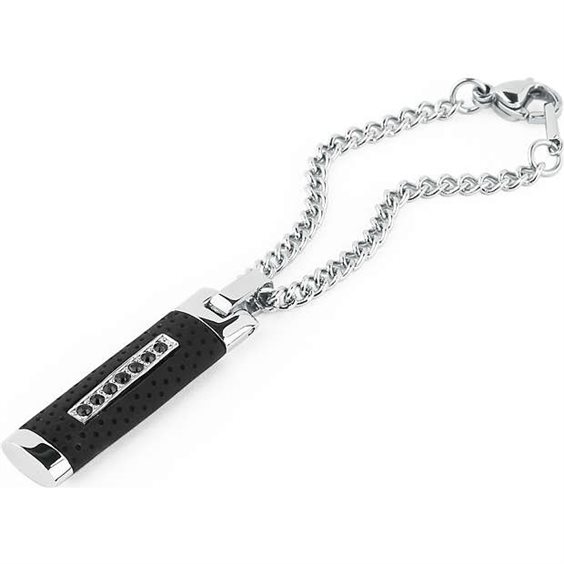 Portachiavi da uomo Brosway Dakar in acciaio e silicone nero, con cristalli neri