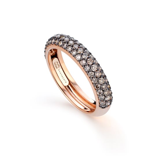 Fedina in oro rosa 18kt 3 file mezzo giro mis 14 con diamanti brown