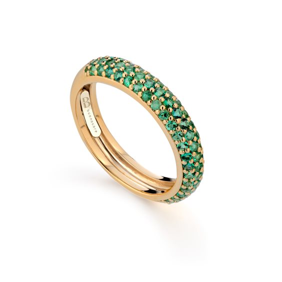 Fedina in oro giallo 18kt 3 file mezzo giro mis 14 con smeraldi