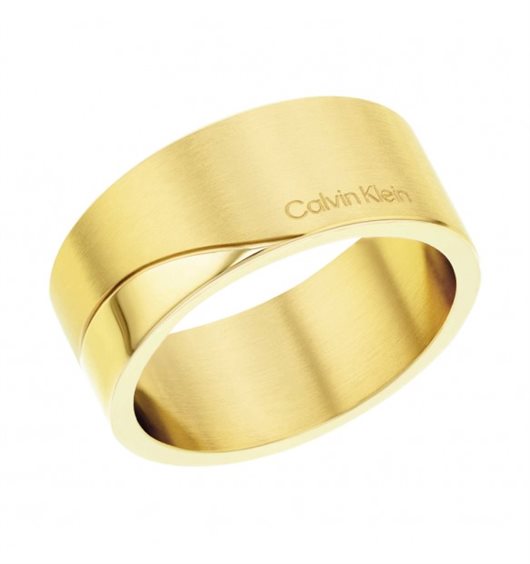 Anello a fascia in acciaio color oro giallo satinato e lucido.