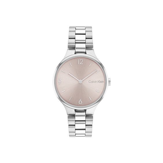 Orologio Calvin Klein Collezione Timeless, Solo Tempo movimento al Quarzo. Cassa (diam. 32 mm) e Cinturino in Acciaio, Quadrante Rose Gold con indici a Bastoni. Resistenza all’acqua fino a 3 ATM.