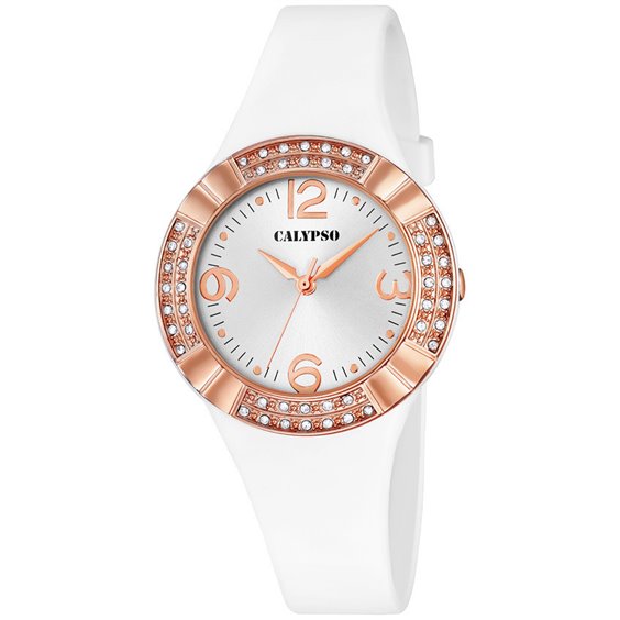 Orologio Analogico Di Calypso Da Donna Della Collezione Trendy. Modello Con Diametro Di Cassa Di 36 Mm, Quadrante Con Indici Con Numeri Arabi Applicati, E Cinturino In Gomma. La Resistenza All'Acqua È Di 10 Atmosfere