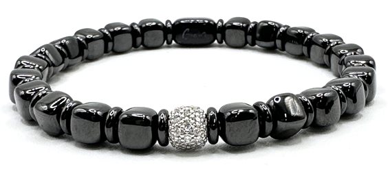 BRACCIALE QUBO CON CERAMICA NERA LUCIDA E UN PAVE'IN ORO BIANCO CON DIAMANTI