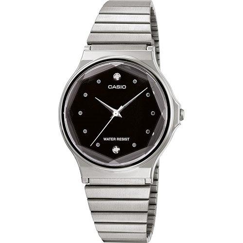 Orologio Casio donna. Il vetro dell'orologio è levigato a forma di cristallo. Cassa e bracciale in acciaio inox. Resistente ed elegante: il bracciale in acciaio inox è un classico per gli orologi.La chiusura può essere regolata con grande facilità in base alle proprie esigenze per renderla più comoda. La batteria alimenta l'orologio per ca. 3 anni. Classificazione di impermeabilità (WR) a norma ISO 22810 Questo modello è impermeabile a norma DIN 8310 e/o ISO 22810, sopporta quindi spruzzi leggeri. Evitare un contatto con una quantità maggiore di acqua. Dimensioni (A x L x P) 38,8mm x 34,9mm x 9,3mm