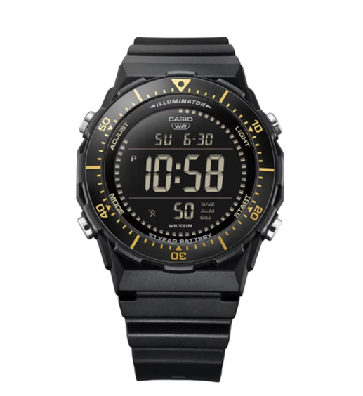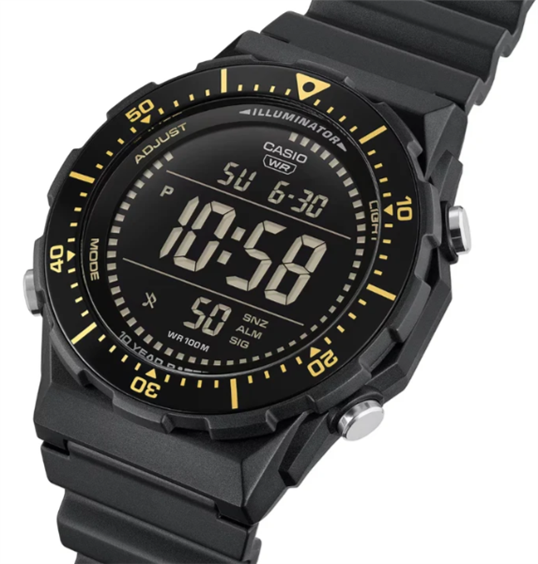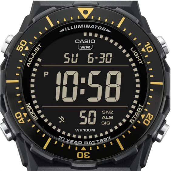 Orologio digitale multifunzionale con ampio display di facile lettura e lunetta girevole, perfetto per lo sport. Resistente all'acqua fino a 10 bar, batteria con durata di dieci anni, retroilluminazione a LED e funzioni pratiche come cronometro, sveglia e altro ancora.