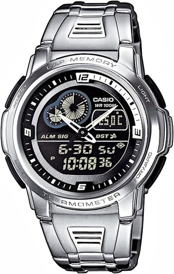 Auto illuminazione Per attivare la retroilluminazione dell’orologio è sufficiente ruotare leggermente il polso e l’auto illuminazione illumina l’intero display. Termometro (-10°C/ +60°C) Un sensore misura la temperatura ambientale dell’orologio e la visualizza in gradi Celsius (-10°C /+60°C). Funzione ora mondiale La funzione ora mondiale mostra l’ora di fino a 29 fusi orari. Cronometro – 1/100 sec – 100 ore Misura con un’esattezza al secondo il tempo trascorso, il tempo intermedio e quello finale. Dei segnali confermano la scelta d’inizio e di fine. La capacità di misurazione arriva fino a 100 ore. Memoria lap 50 Qui vengono depositati fino a 50 set di dati, consistenti della data e dei giri record, che possono essere richiamati in qualsiasi secondo momento. Timer – 1/1 min. – 100 ore (con ripet. automatica) Per chiunque ami la precisione: i timer conto alla rovescia aiutano a ricordare eventi particolari o che si ripetono, emettendo un segnale acustico al momento impostato – quindi riprendono a contare automaticamente dal momento impostato. Il tempo può essere impostato in minuti e con un anticipo di fino a 100 ore. Particolarmente pratico per l’assunzione giornaliera di medicinali o l’interval training. Allarme giornaliero L’allarme giornaliero ricorda eventi che si ripetono quotidianamente con un segnale acustico emesso all’ora preimpostata. Attivazione/disattivazione del suono dei tasti Con un pulsante apposito è possibile disattivare il suono dei testi. Dopo la disattivazione non viene più emesso alcun segnale acustico al passaggio da una funzione all’altra. Gli allarmi impostati o il countdown timer restano tuttavia attivi anche dopo aver disattivato il suono dei tasti. Calendario automatico Una volta impostato, il calendario automatico visualizza sempre la data esatta. Formato 12/24 ore L’ora può essere visualizzata a 12 o 24 ore. Vetro orologio convesso La superficie dell’orologio è convessa. Si ha così una grande stabilità e resistenza alla pressione. Cassa in resina e acciaio Bracciale in acciaio inox Resistente ed elegante: il bracciale in acciaio inox è un classico per gli orologi. Chiusura di sicurezza Potete fidarvi: il cinturino di questo orologio è dotato di una chiusura di sicurezza particolarmente sicura, che ne evita l’apertura accidentale. 3 anni – 1 batteria La batteria alimenta l’orologio per ca. 3 anni. Classificazione di impermeabilità (10 bar) Perfetto per nuotare e fare snorkeling: l’orologio è impermeabile fino a 10 bar/100 metri. L’indicazione dei metri si riferisce non a una profondità di immersione ma alla pressione atmosferica che è stata utilizzata nell’ambito dell’omologazione di impermeabilità. (ISO 22810) Accuratezza +/- 30 sec secondi al mese