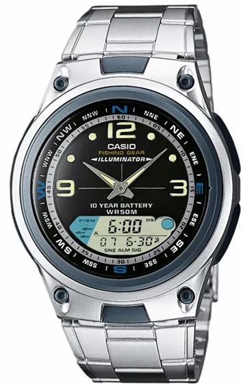 Caratteristiche Dual Time, Luce LED, Indicatore livello di pesca, Dati lunari, Allarmi multifunzione, Indicatore livello di pesca, Segnale orario orario, Pulsante attivazione / disattivazione tono