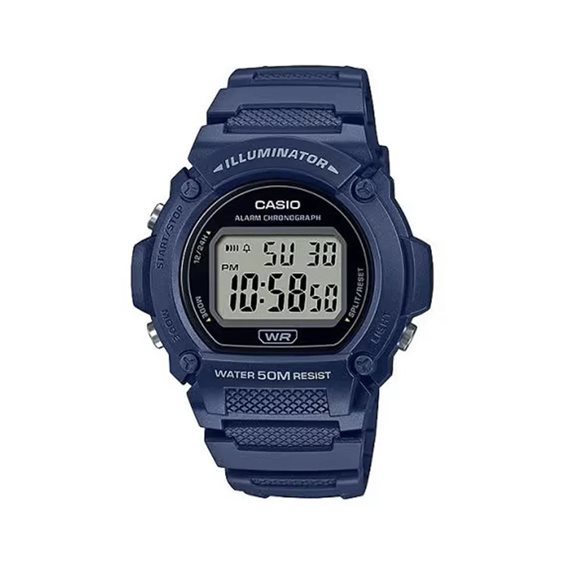 Dimensioni della cassa (A x L x P): 48.1 × 47 × 13.9 mm Peso: 40 g Materiale della cassa e della lunetta: Resina Impermeabile fino a 5 bar Durata approssimativa della batteria: 7 anni con CR2016 Vetro acrilico Cronometro Cronometro da centesimi di secondo Capacità di misurazione: 59'59,99" Modalità di misurazione: tempo trascorso, tempo parziale, tempi del 1° e 2° posto Promemoria sonoro /Segnale orario Promemoria sonoro giornaliero Segnale orario Luce Retroilluminazione a LED Colore chiaro LED:Ambra Calendario automatico (impostato su 28 giorni per febbraio) Precisione: ±30 secondi al mese Formato 12/24 ore Indicazione dell'ora regolare: ora, minuto, secondo, pm, data, giorno del mese