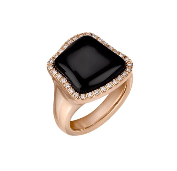 Anello Enchantè in oro rosa 18Kt, con cornice di Diamanti a taglio brillante da 0.26 ct. e Onice Nero da 1.65ct.