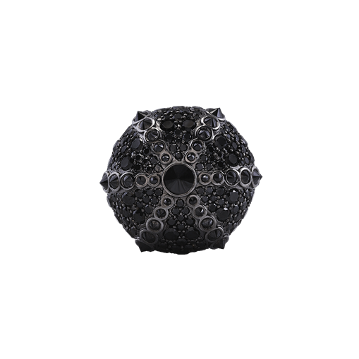 Anello ricci di mare in oro bianco brunito 18kt, diamanti neri e gambo in oro giallo