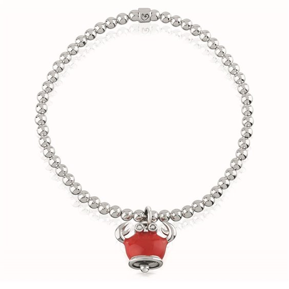Bracciale Et Voilà elastico con ciondolo granchio micro in argento, smalto rosso e diamanti neri.