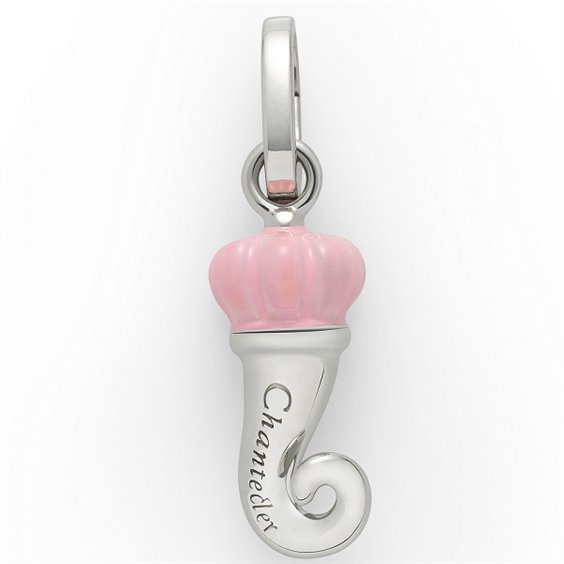 Ciondolo cornetto mini in argento e testa in smalto rosa.