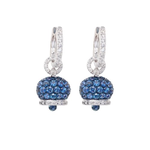 ORECCHINI PICCOLI IN ORO BIANCO E BRUNITO, DIAMANTI (0.62 CT) E PAVè DI ZAFFIRI BLU.