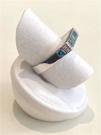 Anello oro bianco 18kt Topazio azzurro ct. 0,25 e brillanti ct. 0,06 Misura 14 CHIMENTO