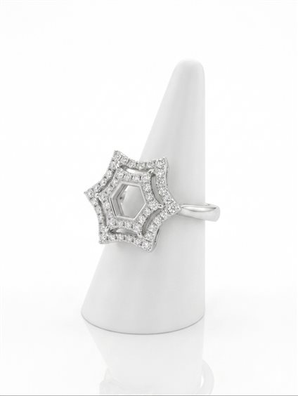 Anello con motivo esagonale in oro bianco 18 kt. e diamanti taglio brillante di kt. 0.48 Purezza VVS Colore G