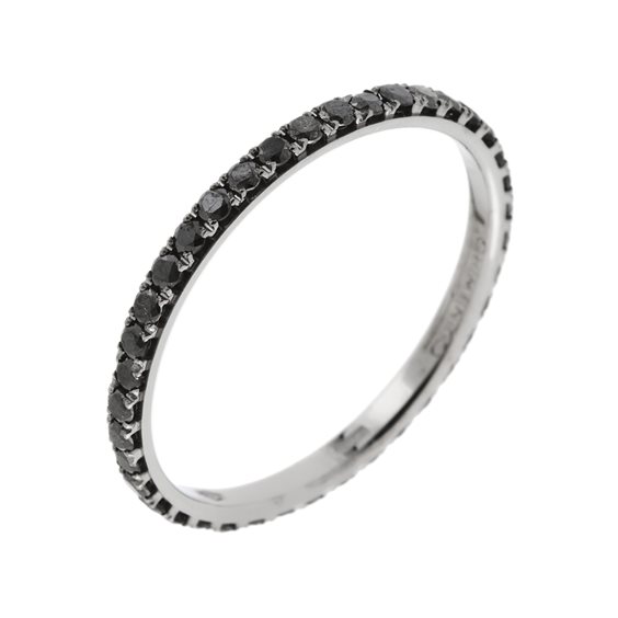 Fedina oro bianco 18 Kt della linea Eternity di Chimento, impreziosita su tutta la circonferenza da diamanti neri taglio brillante con caratura totale di 0,82. La taglia disponibile é 23, ma con la possibilità di procurare qualsiasi misura necessaria.