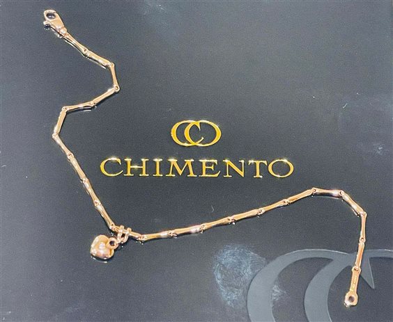 BRACCIALE CHIMENTO IN ORO ROSA KT 18 MAGLIA BAMBOO CON PENDENTE CUORE IN BRILLANTE KT 0.01, MISURA BRACCIALE 18 CM.